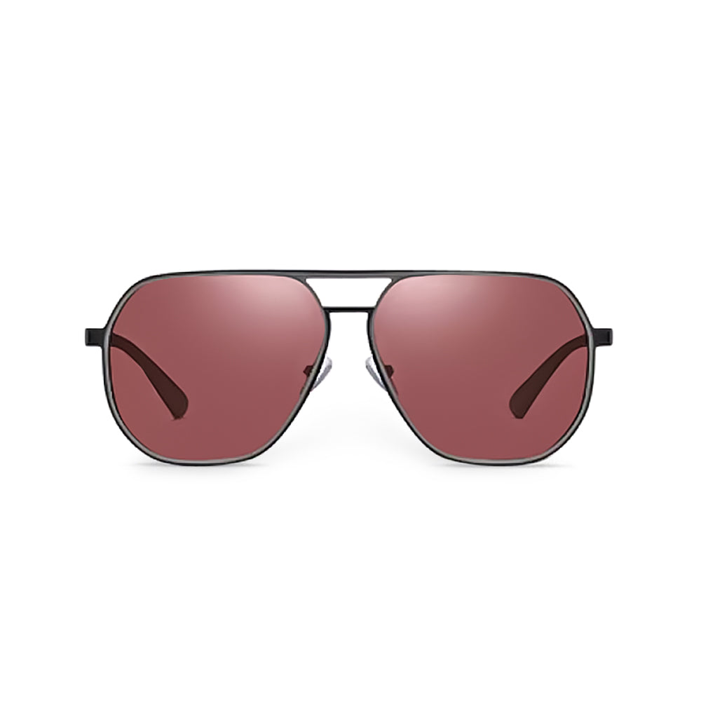 Unisex matte black & gunmetal lightweight double bridge metal aviator frames with Rosso polarised lenses which are 100% UVA & UVB protected. Flexible black arms finish with a gunmetal insert on tip.